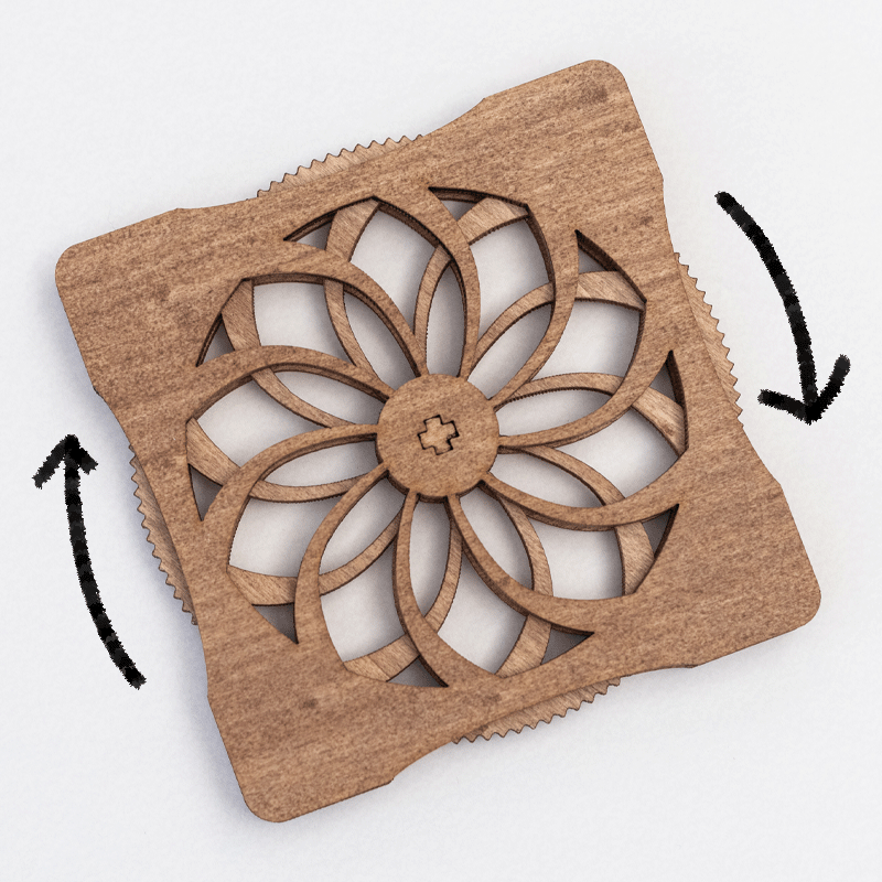 Podtácek vyrobený z topolového dřeva s funkcí otáčení středové části.