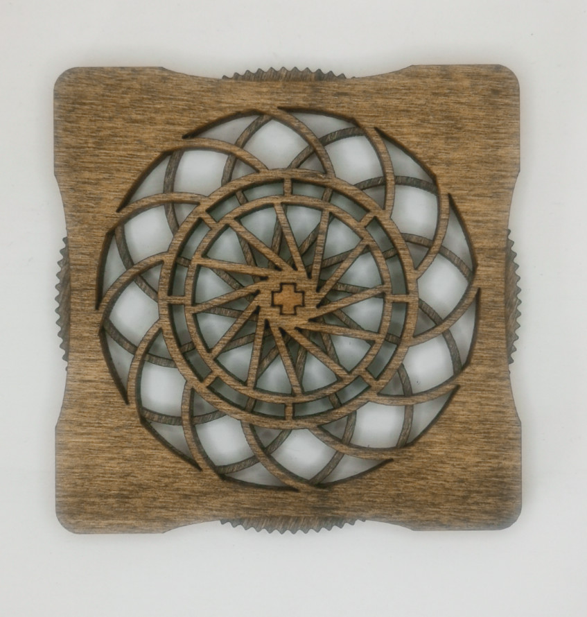 Podtácek vyrobený z topolového dřeva s funkcí otáčení středové části.